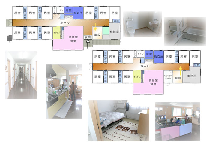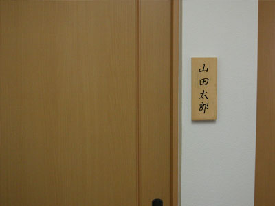 | ↑入居者さんの各居室には、昔ながらの木製かつ縦型の表札をつけています。その結果、入居者さんはひとりでも迷わず、居室へ戻ることができています。 |